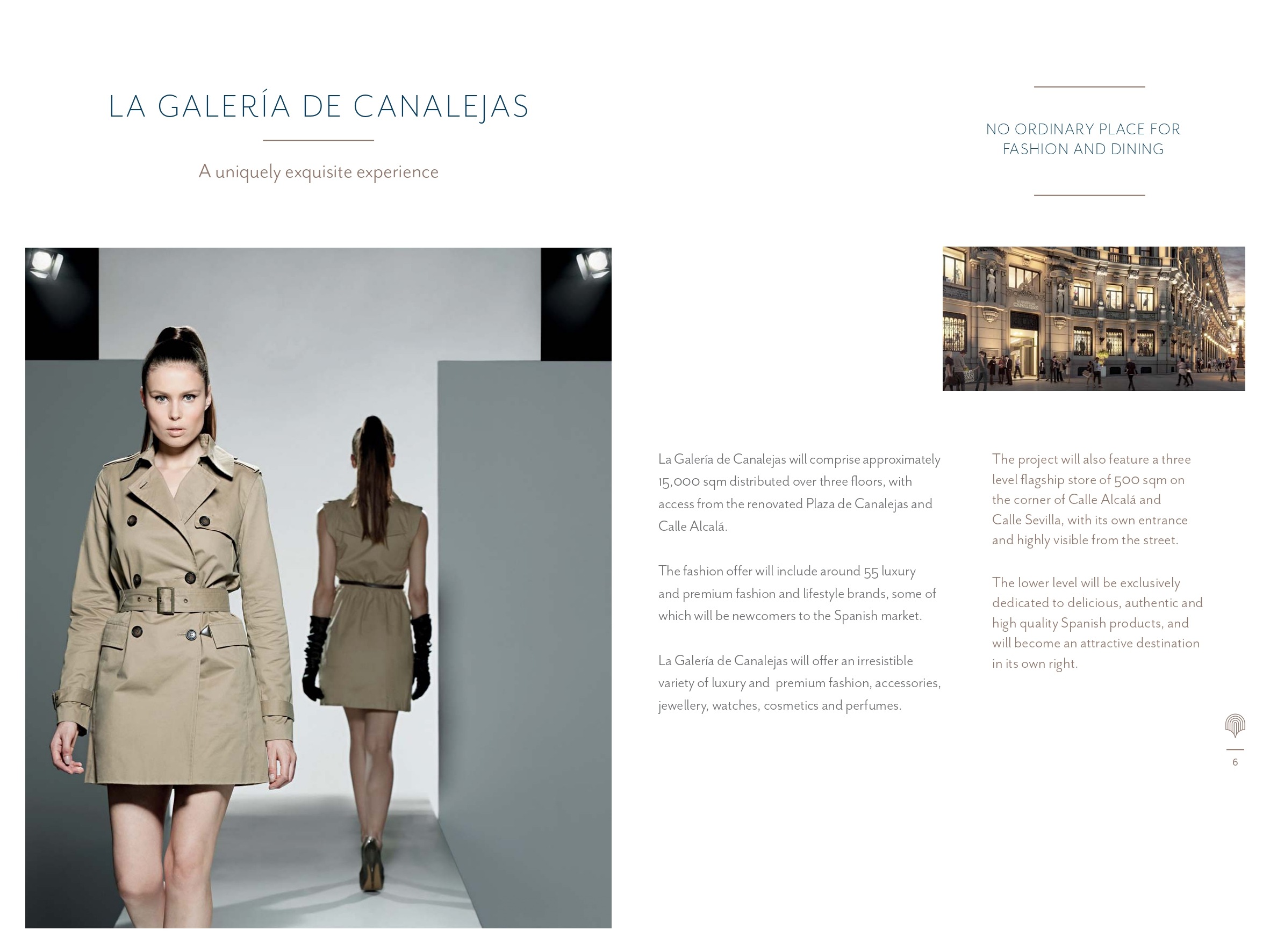 The Galería de Canalejas comprises approximately 15,000 sqm distributed over three floors, with access from the renovated Plaza de Canalejas and Calle Alcalá.