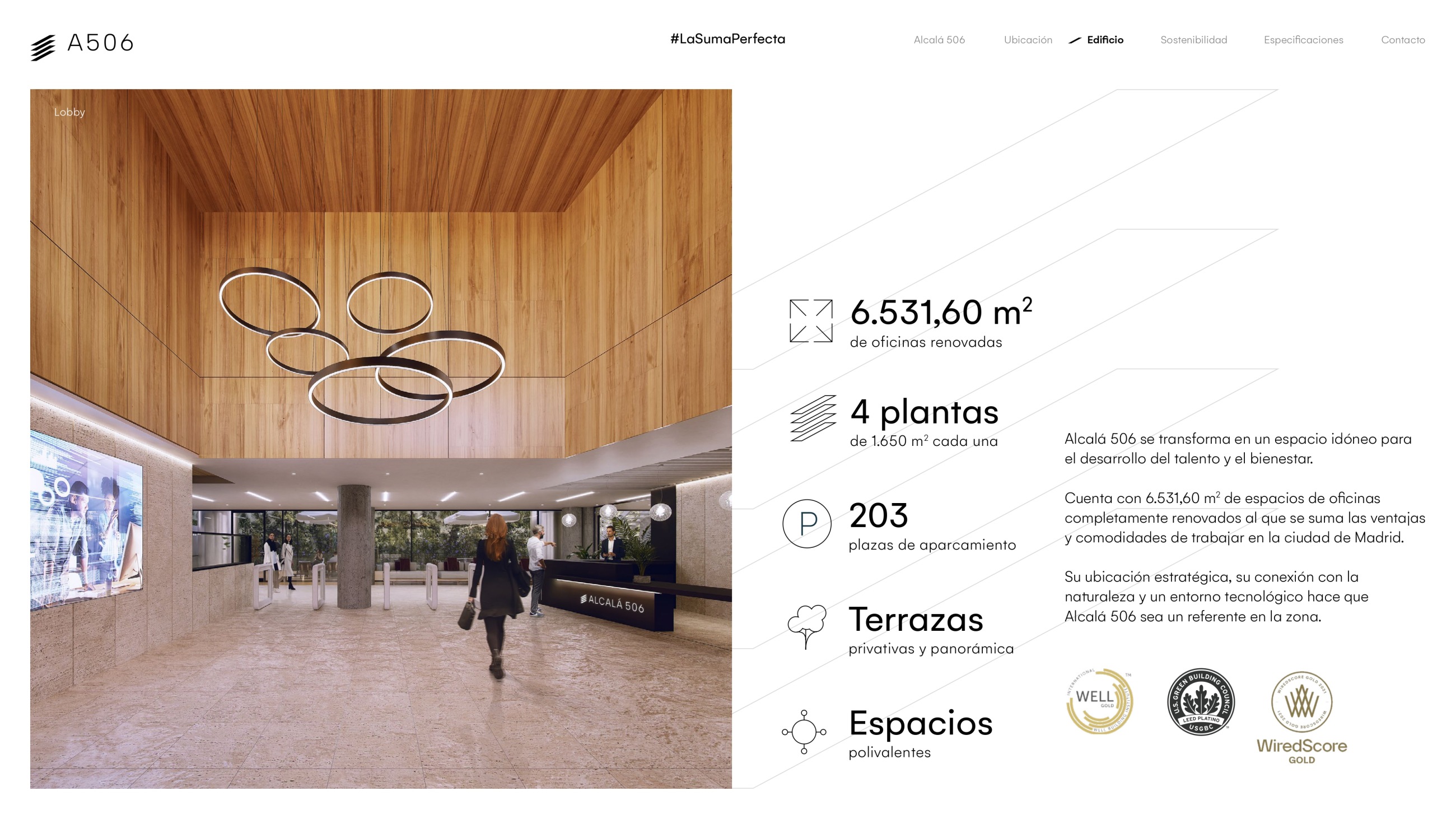 Right in front of Quinta de los Molinos Park and newly renovated, A506 consolidates its key position in Madrid's corporate future by offering the perfect place for talent.