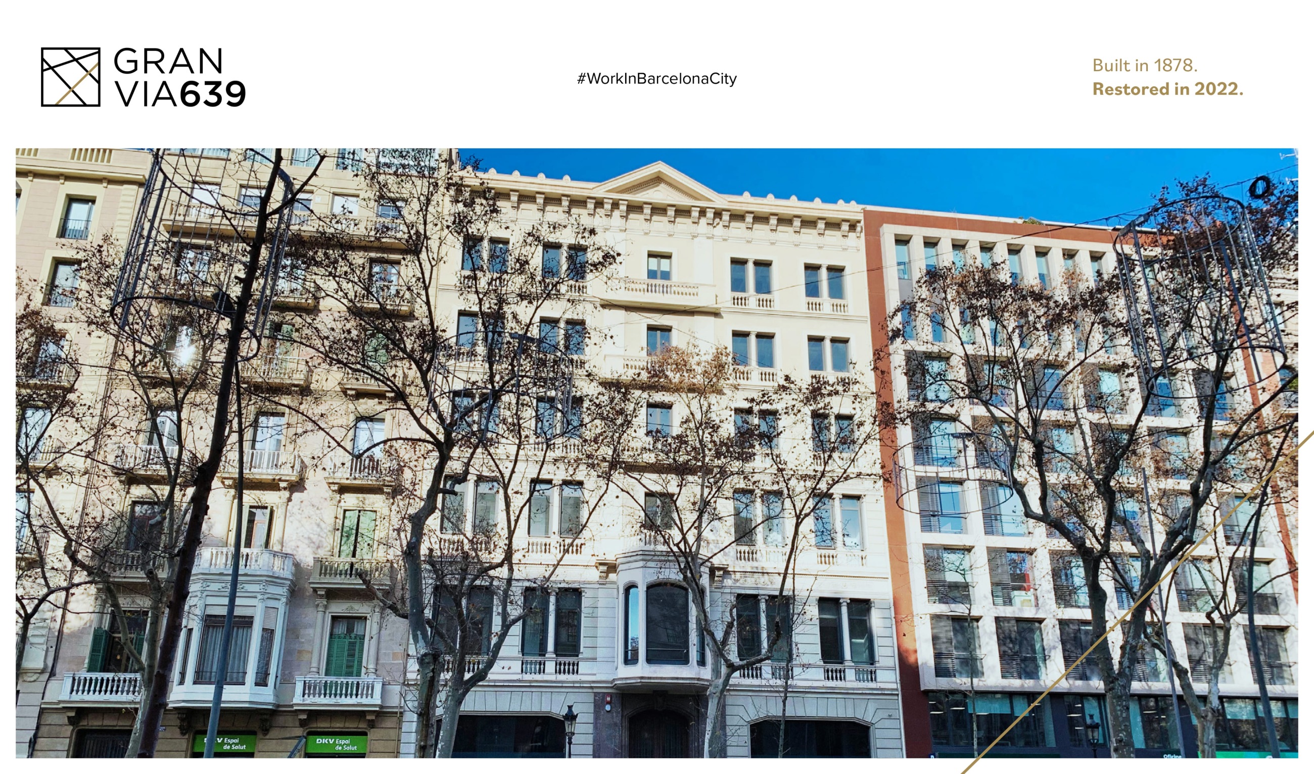 Gran Vía 639 re-emerges to inspire a new generation of offices. This architectural gem is located in the heart of Barcelona and has been masterfully restored to create a cutting-edge workspace.