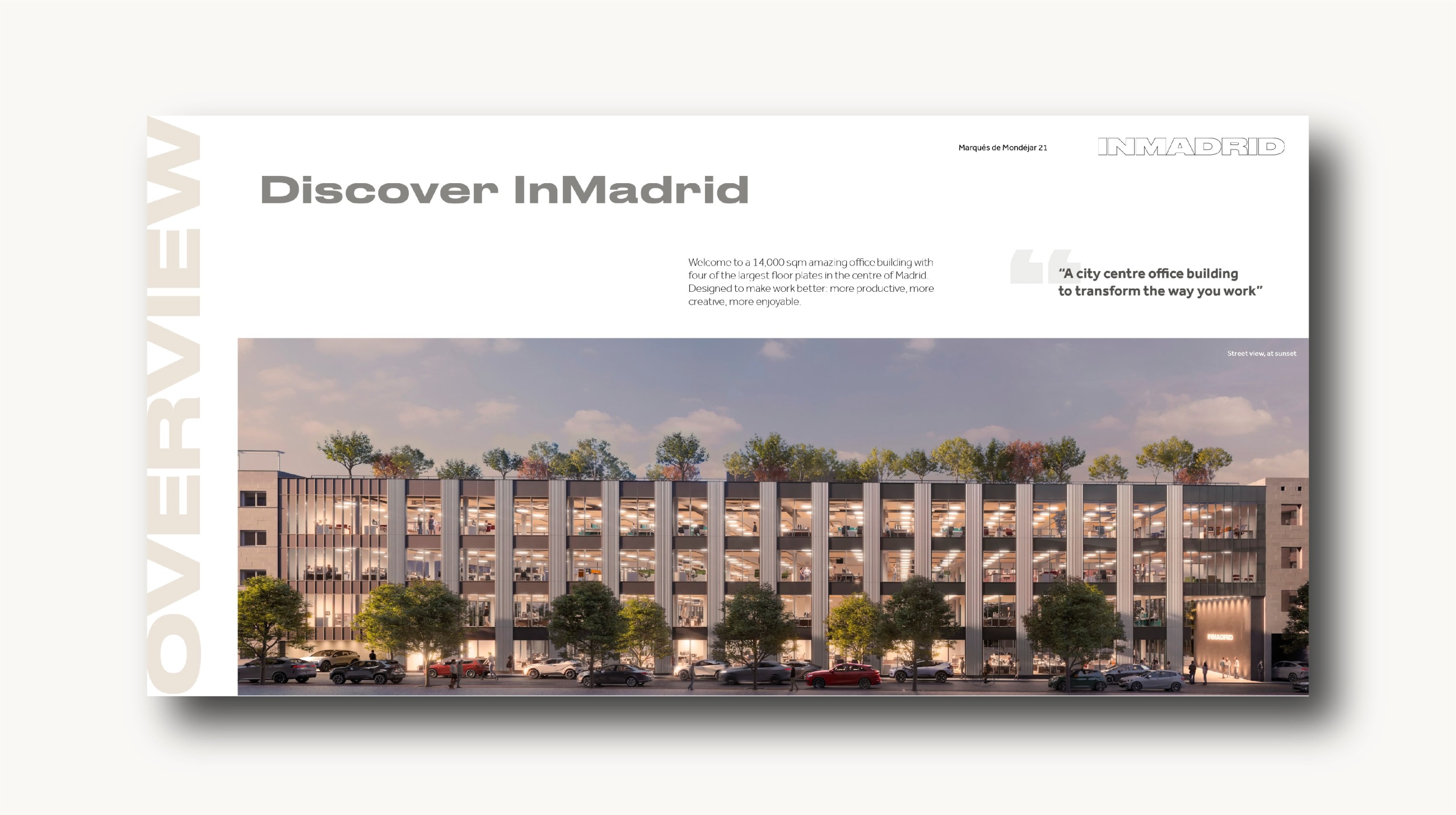 A 14,000 sqm amazing office building with 4 of the largest floor plates in the centre of Madrid. Designed to make work better: more productive, more creative, more enjoyable