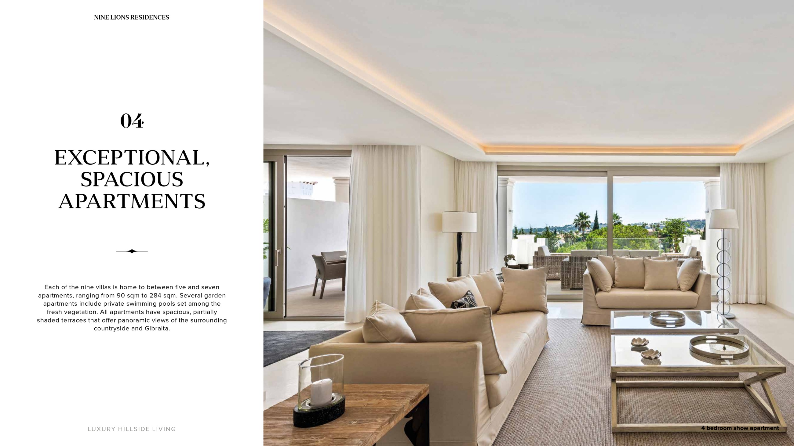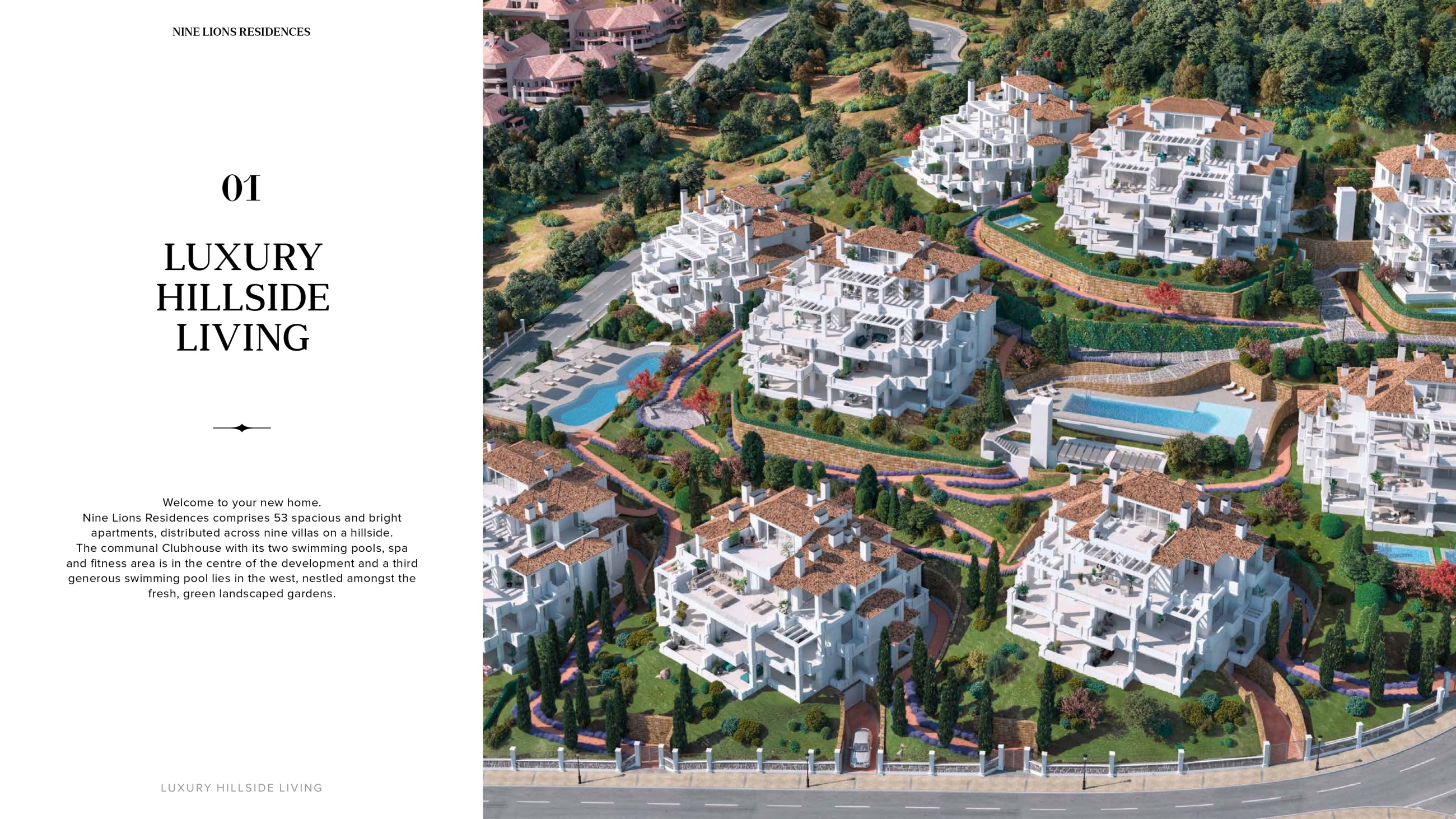 53 spacious and bright luxury apartments distributed across 9 villas with spectacular views across the sea and mountain.