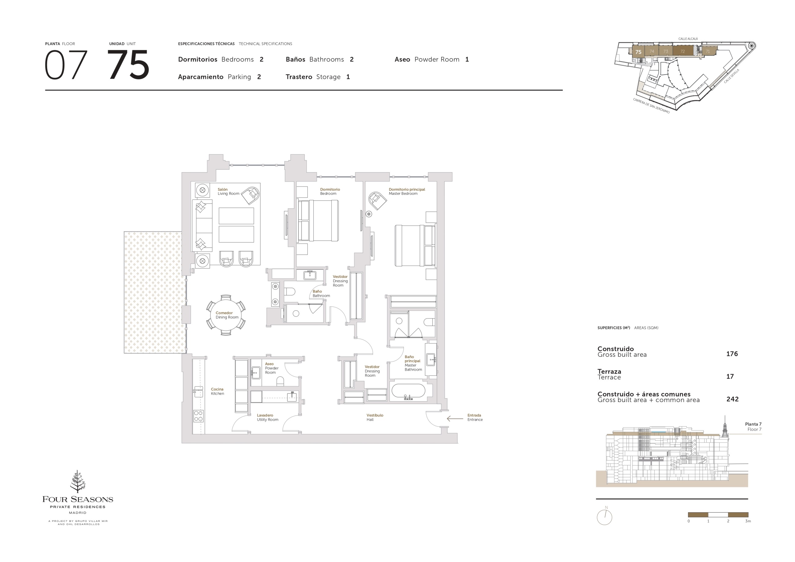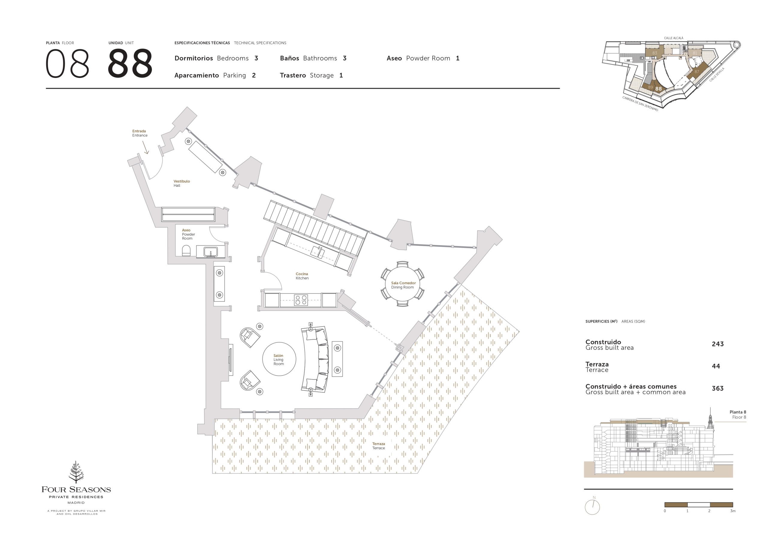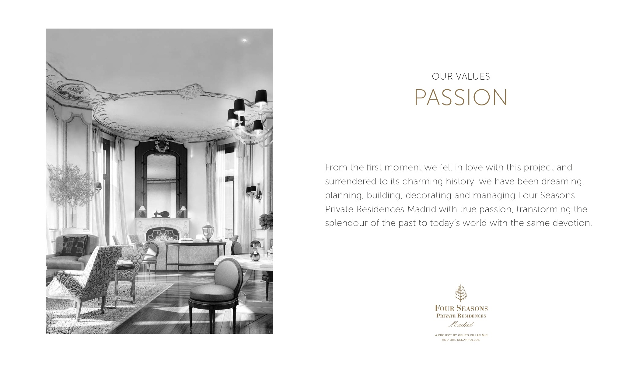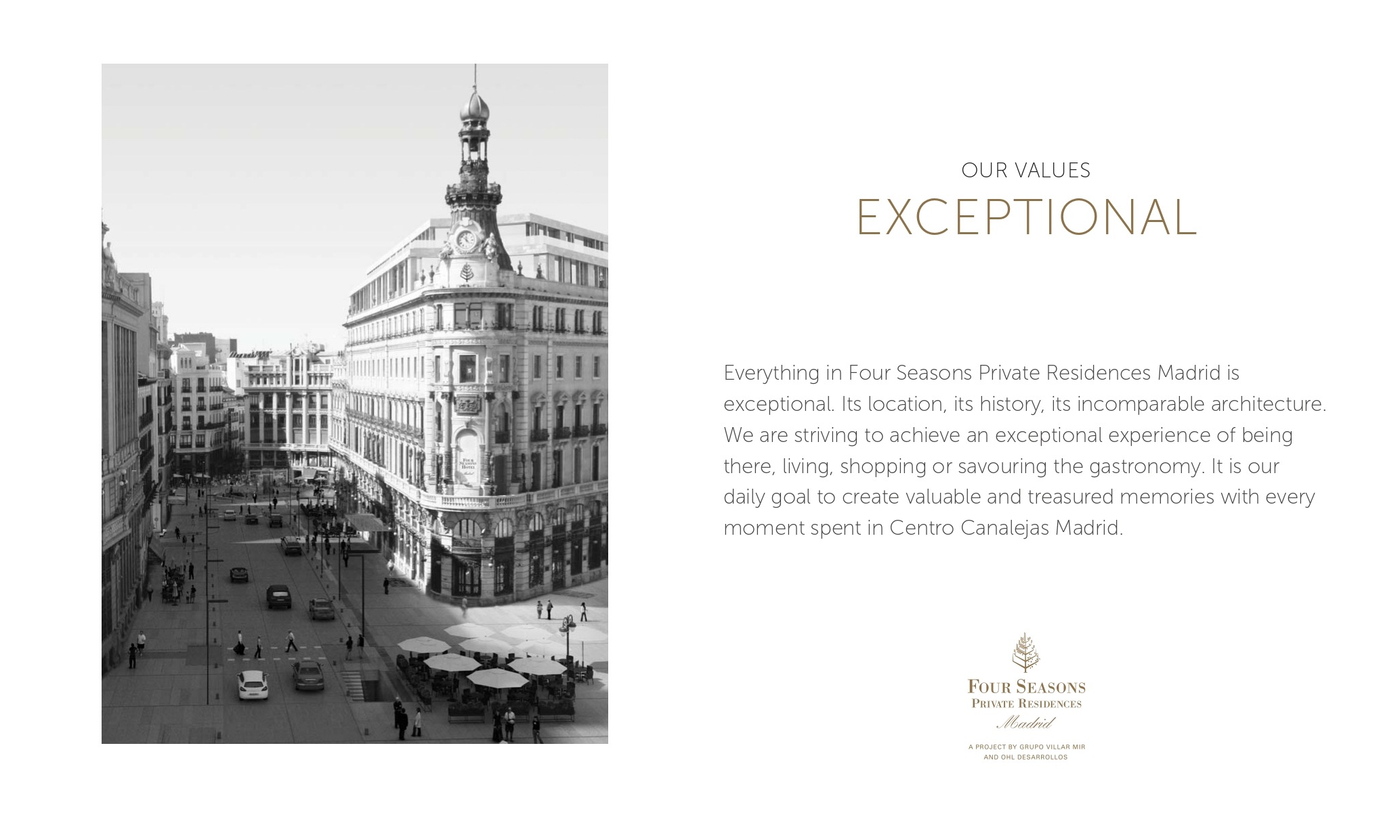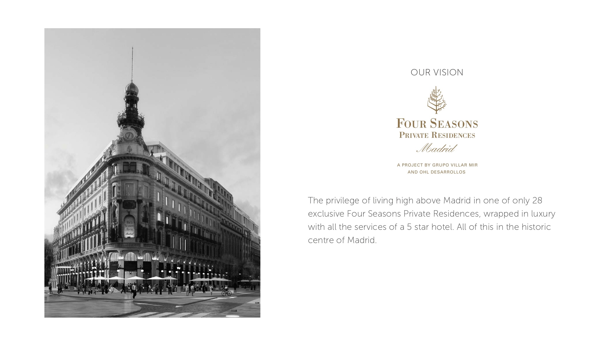 The privilege of living high above Madrid in one of only 22 exclusive Four Seasons Private Residences, wrapped in luxury with all the services of a 5 star hotel. All of this in the historic centre of Madrid.